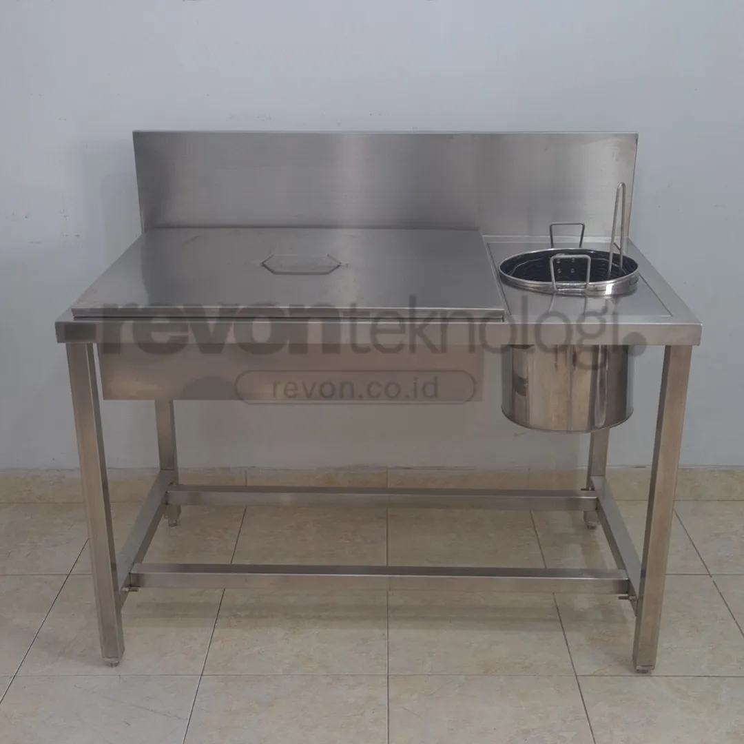 | Meja Dusting Stainless (1 bak tepung + 1 lubang panci bumbu cair)