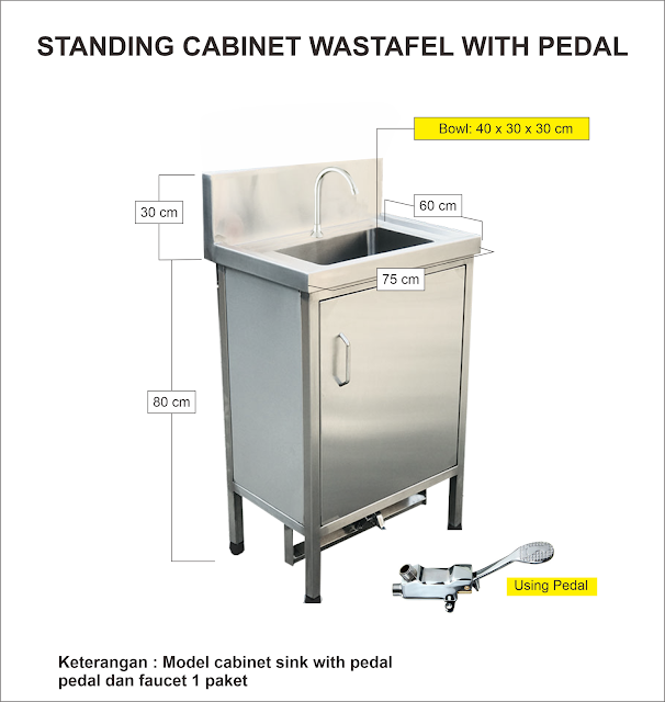 Sebagai upaya agar cuci tangan bersih secara maksimal. Pada jenis yang ketiga ini juga telah dilengkapi dengan pedal sebagai pengganti kran. Tak perlu lagu buka tutup air dengan tangan, cukup injak saja beres sudah.